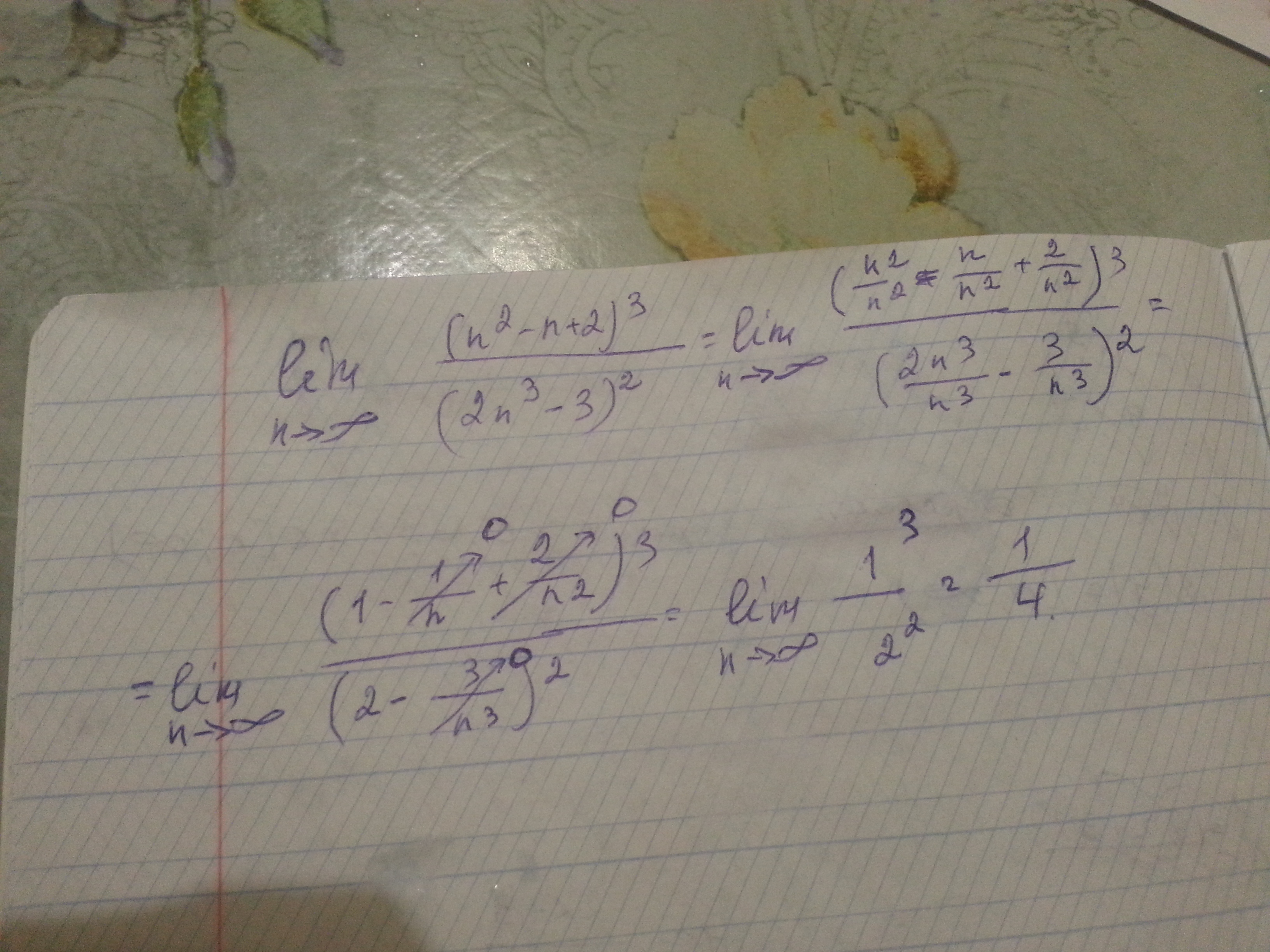 lim (n^2-n+2)^3 / (2n^3-3)^2 = 1/4
