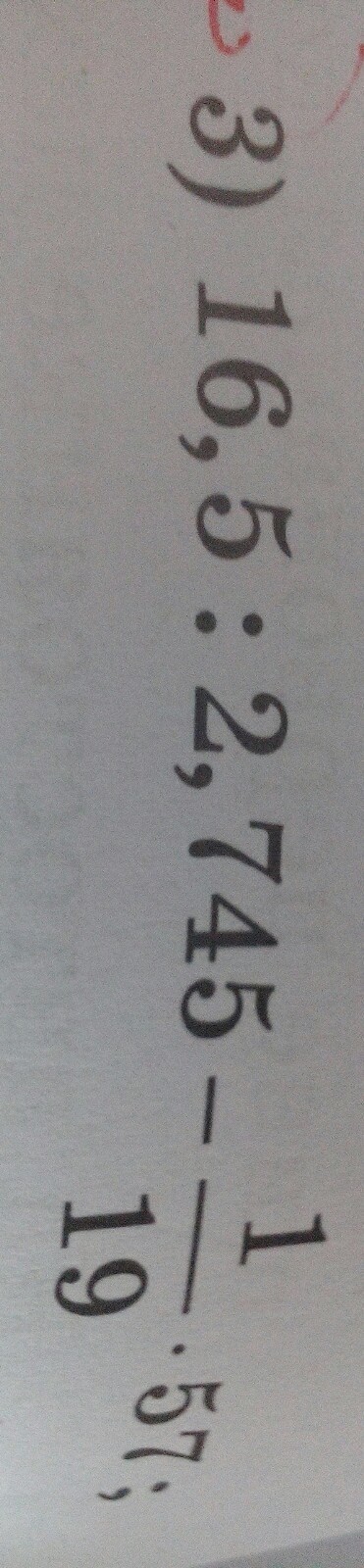 16,5 ÷ 2,745 - 1/19 × 57 = 3 целых 2/183