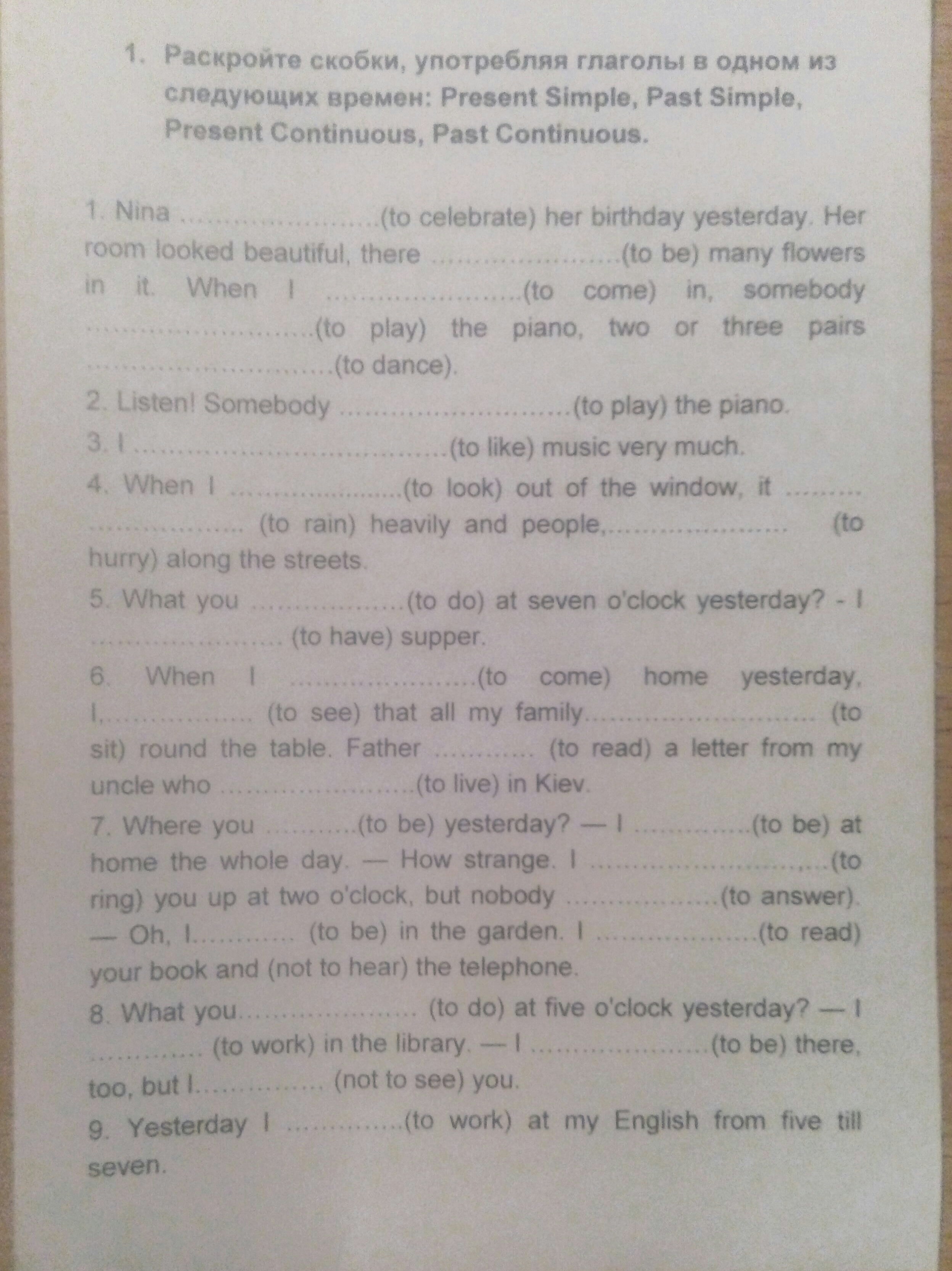Раскройте скобки, употребляя глаголы в одном из следующих времен : Present Simple, Past simple , Present Continuous, Past continuous.