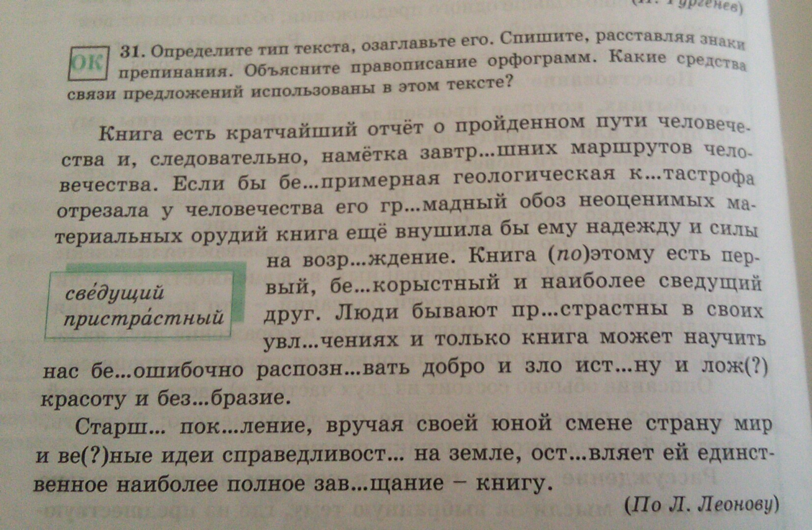 определите тип текста, озаглавьте его. спишите, разставляя знаки препинания. объясните правописание орфограмм. какие средства связи предложений использованы в этом тексте