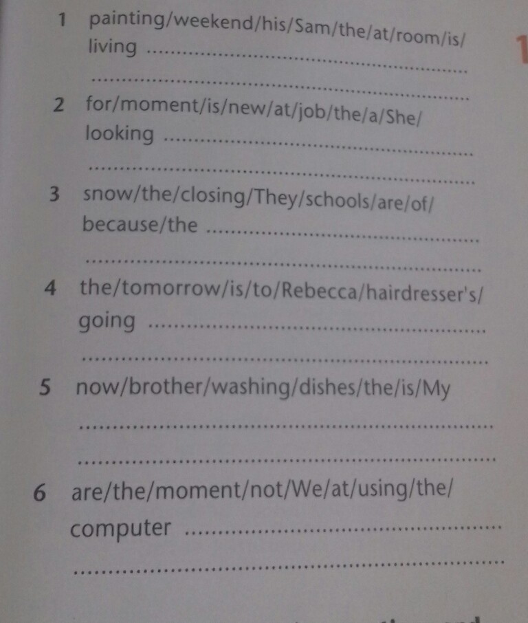 Поместите слова в правильном порядке, чтобы делать предложения.