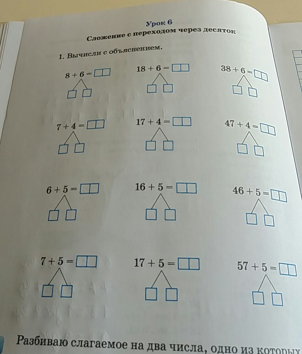 сложение с переходом через десяток задание 1 вычислить с объяснением