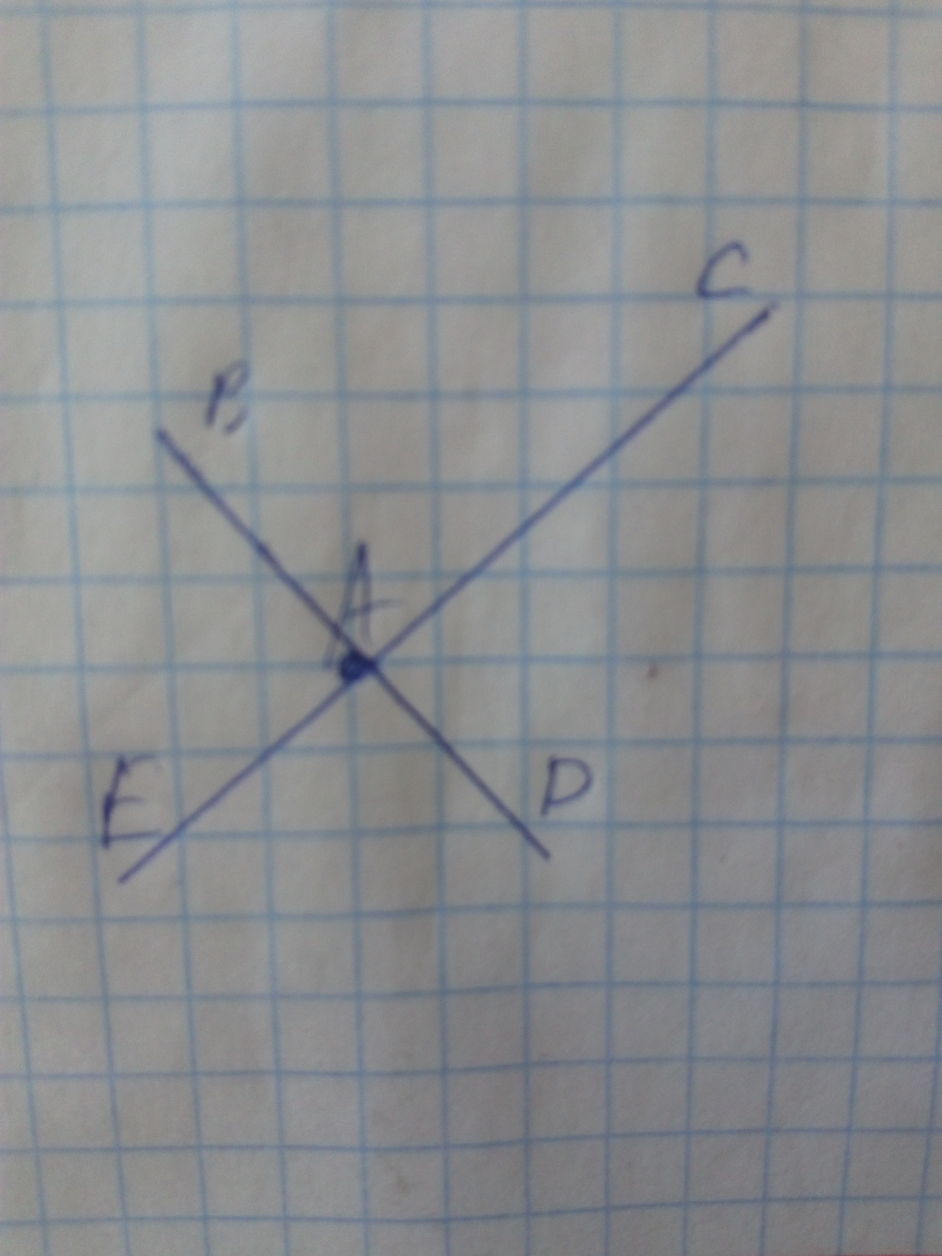 Отметьте точку A и проведите через неё две различные прямые. Обозначьте и запишите получившиеся лучи.