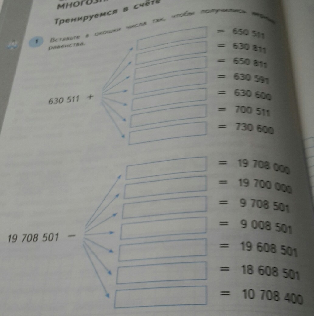 Вставьте в окошки числа так чтобы получилось верное равенство