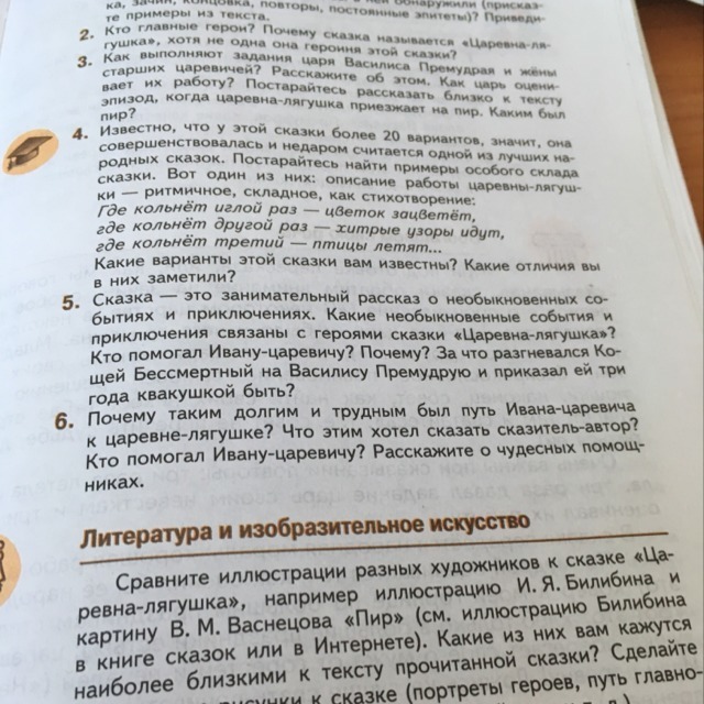 6.Иван сжёг кожу своей лягушки, хотя его никто об этом не просил, к тому же задания было 3 (каравай, ковёр, танец) и путешествие было с 3-мя заданиями и изгрыз 3 хлеба, и проносил 3 пары ботинков, всё здесь связано . А помогали ему медведь, селизень, заяц, щука.