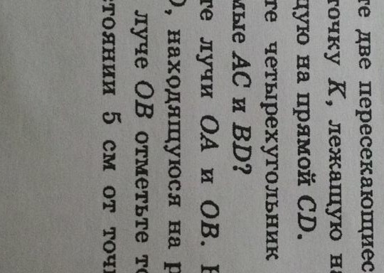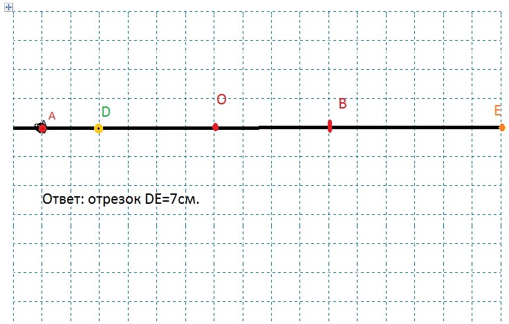 начертите лучи OA и OB. На лучше OA отметьте точку D, находящуюся на расстоянии 2см от точки O, на луче OB отметьте точку E, находящуюся на расстоянии 5см от точки O. Измерьте отрезок DE
