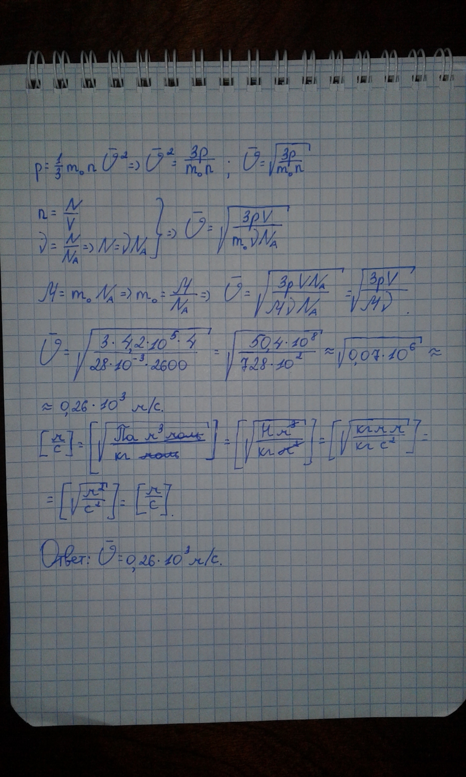 определите среднюю квадратичную скорость движения молекул азота N2, содержащихся в сосуде объемом V=4,0м^3 под давлением p=4,2атм, если количество вещества азота V=2600 моль