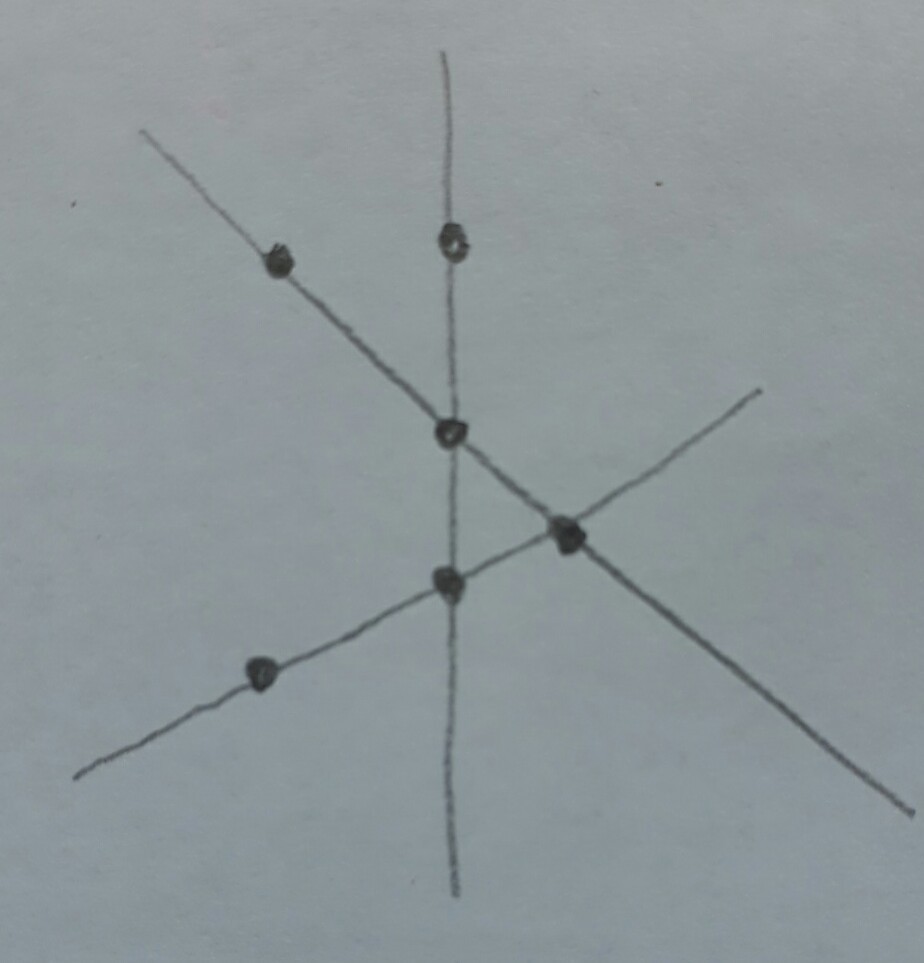 Петя начертил 3 прямые и обозначил на них 6 точек. Оказалось, что на каждой прямой он обозначил 3 точки. Нарисуйте , как он это сделал.