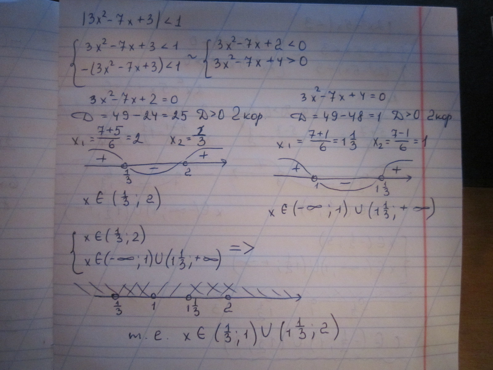 правильно если меньше положительного числа то решение это пересечение ответов а если меньше положительного числа то объединение ответов