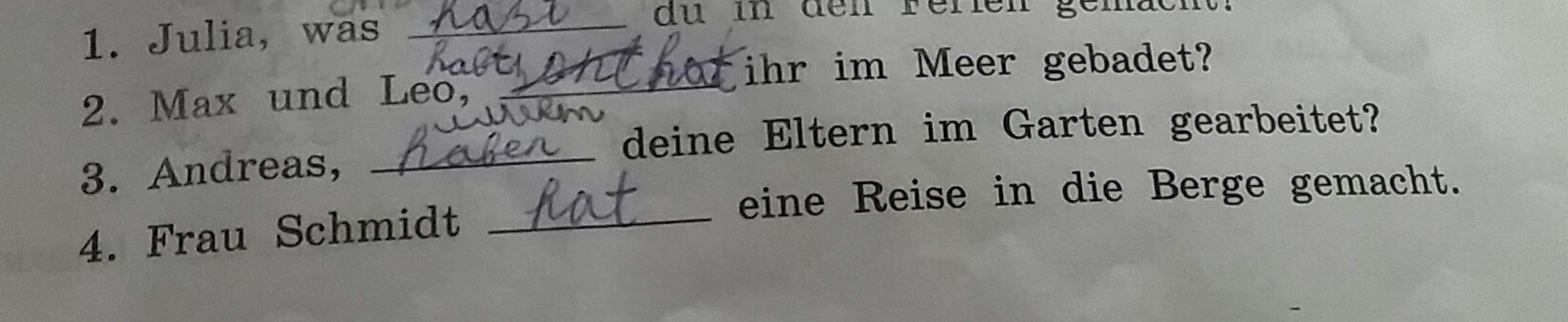 4. Госпожа Шмидт, ездила в путешествие в горы.