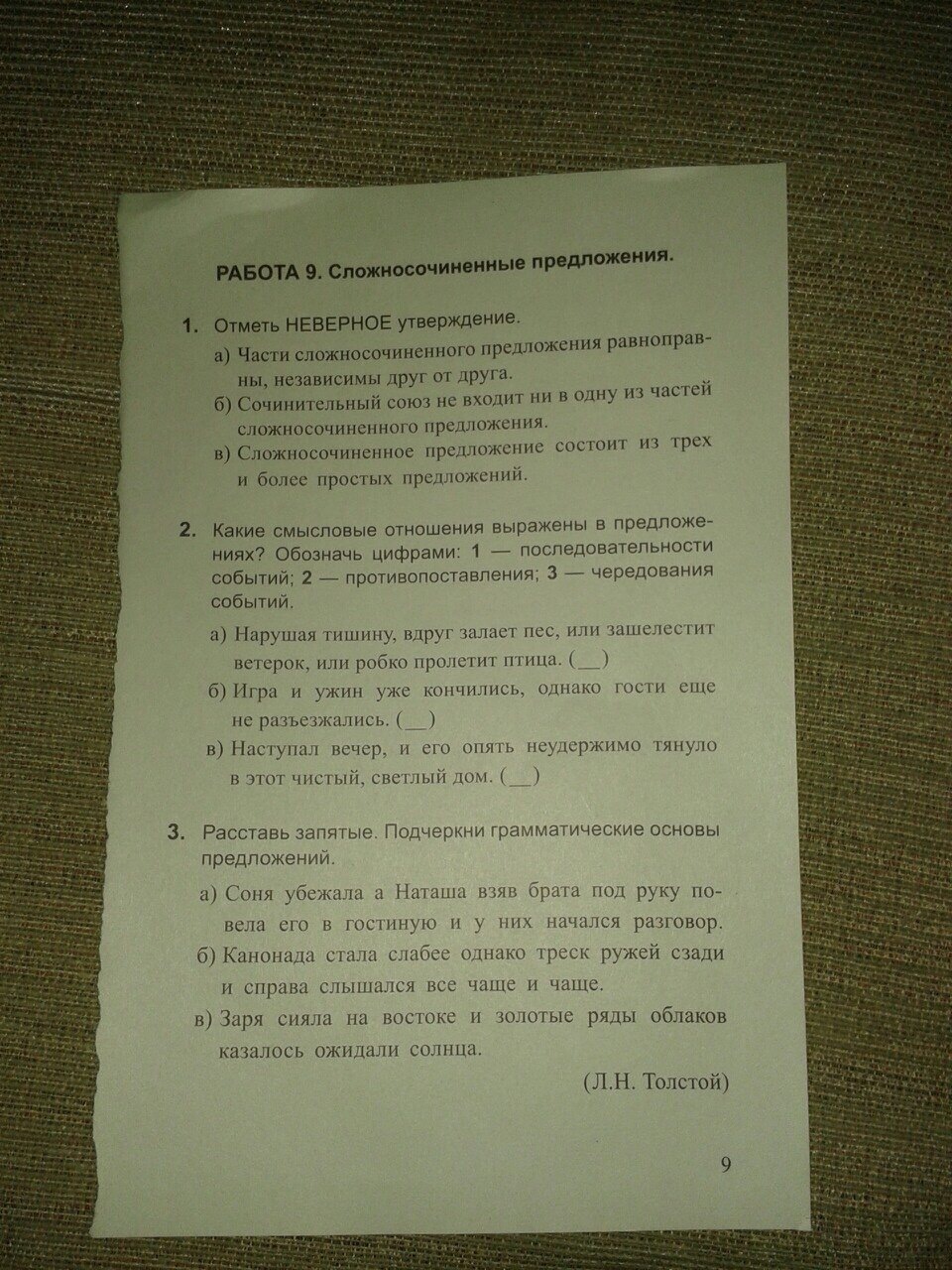 Работа 9. 1. в), ибо в сложносочиненном предложении может быть 2 и более