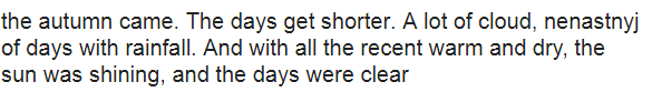 the autumn came. The days get shorter. A lot of cloud, nenastnyj of days with rainfall. And with all the recent warm and dry, the sun was shining, and the days were clear