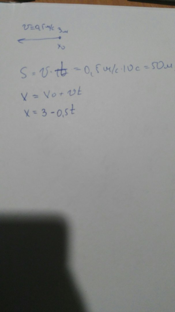 материальная точка начала движение против оси х из точки х0= 3 м со скоростью V = 0,5м/c, напишите уравнение движения точки, постройте график движения, найдите путь пройденный точкой за первые 10с движения.