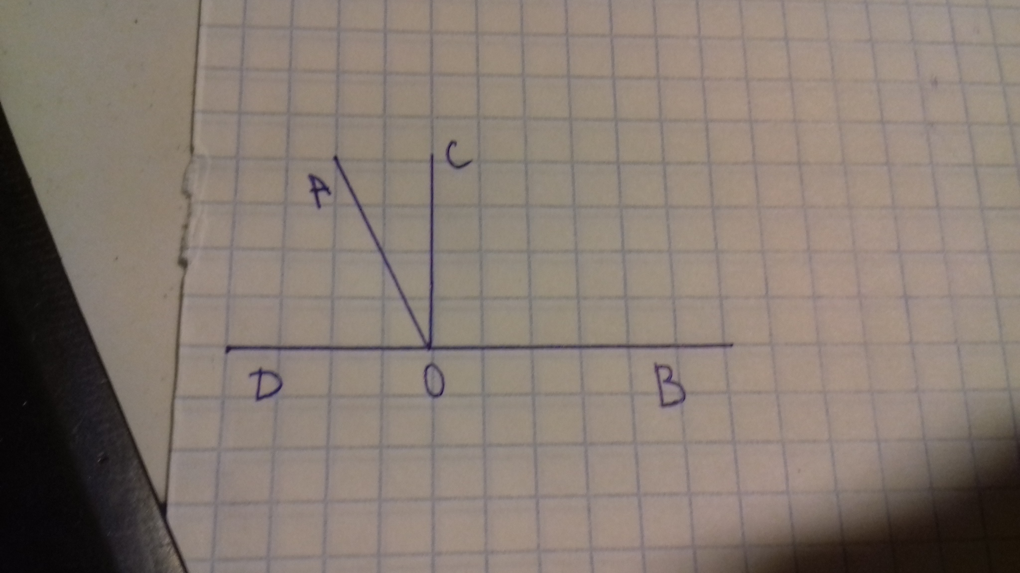 Чертишь угол АОВ, проводишь в нем прямую ОС, и проводишь прямую ОD вне угла АОВ