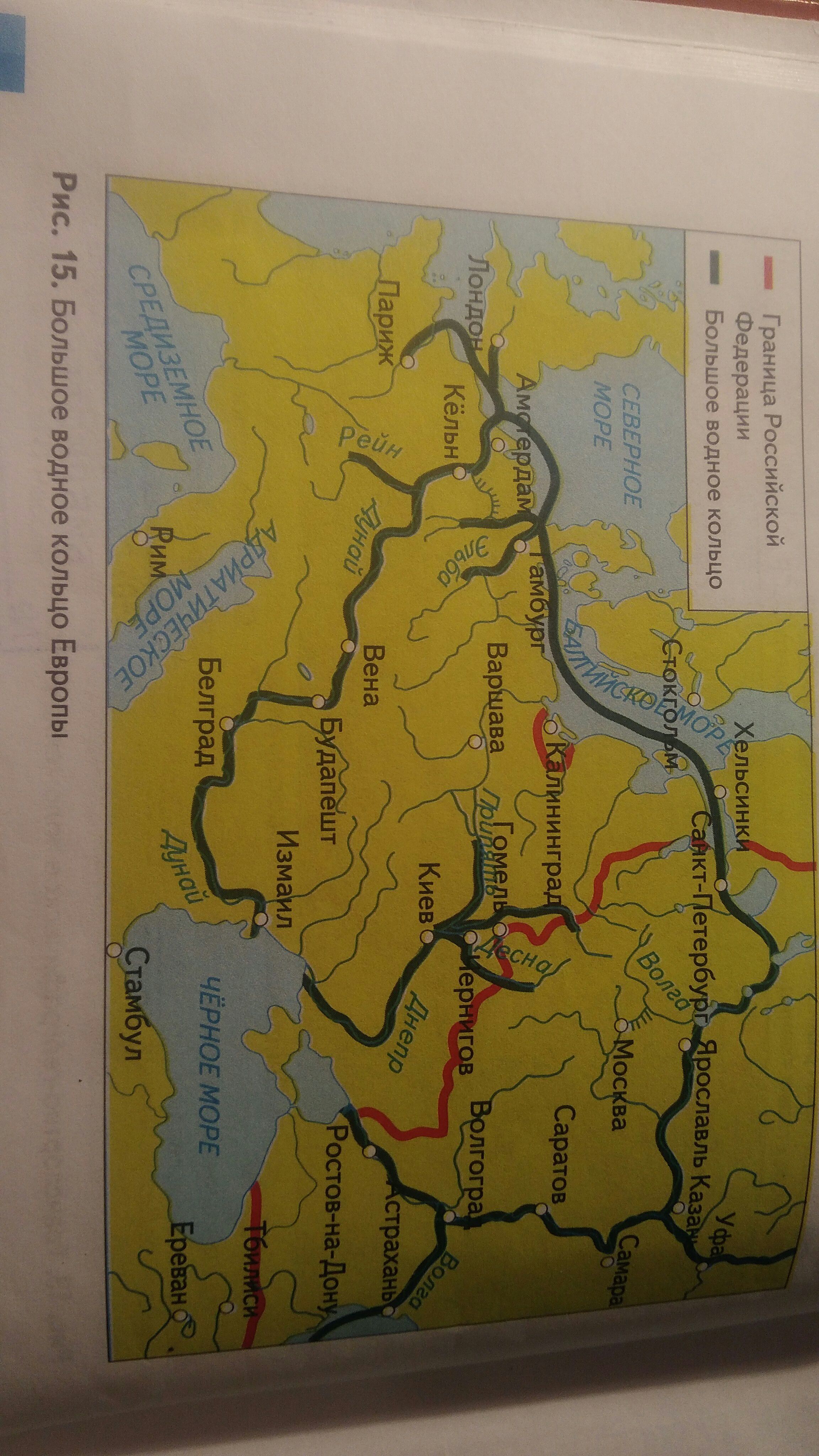 По рисунку 15 физической карте определите С какими государствами Россия сможет расширить свои внешние связи Благодаря использованию большого водного кольца Европы???