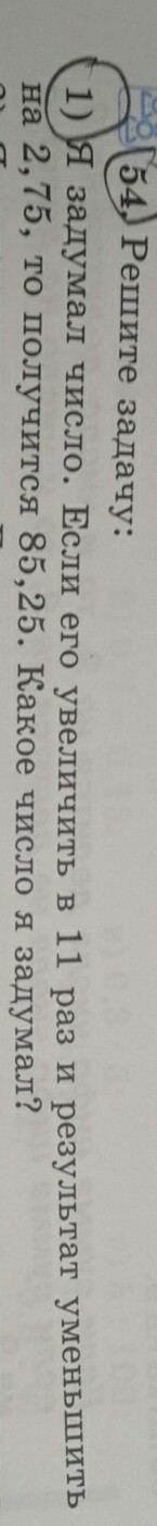 Я задумал число . Если его увеличить на 11 раз и результат уменьшить на 2,75 то получиться 85 , 25 .Какое число я задумал ?