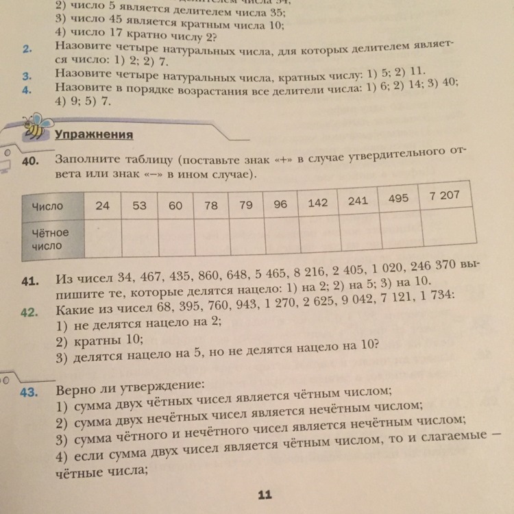 №42 1) не делятся нацело на два это все нечетные числа 395,943,2625,7121