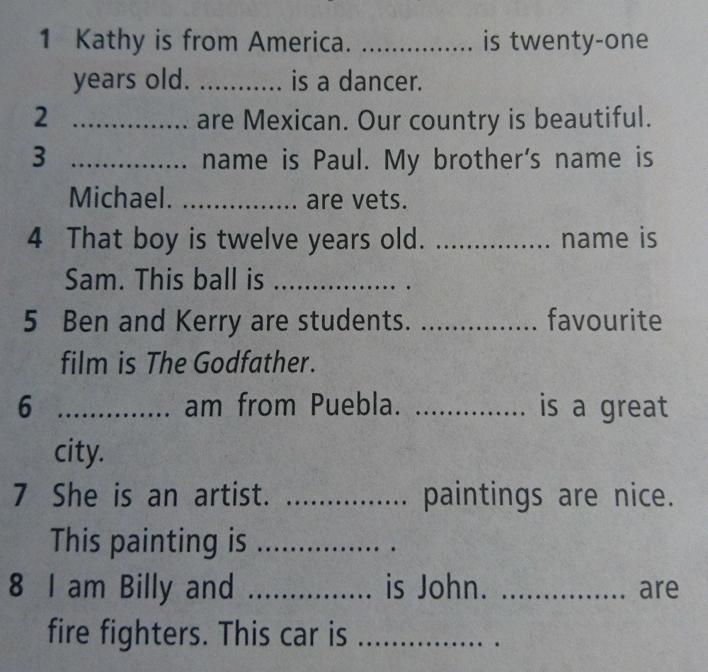 1. Kathy is from America. SHE is twenty-one years old. SHE is a dancer.