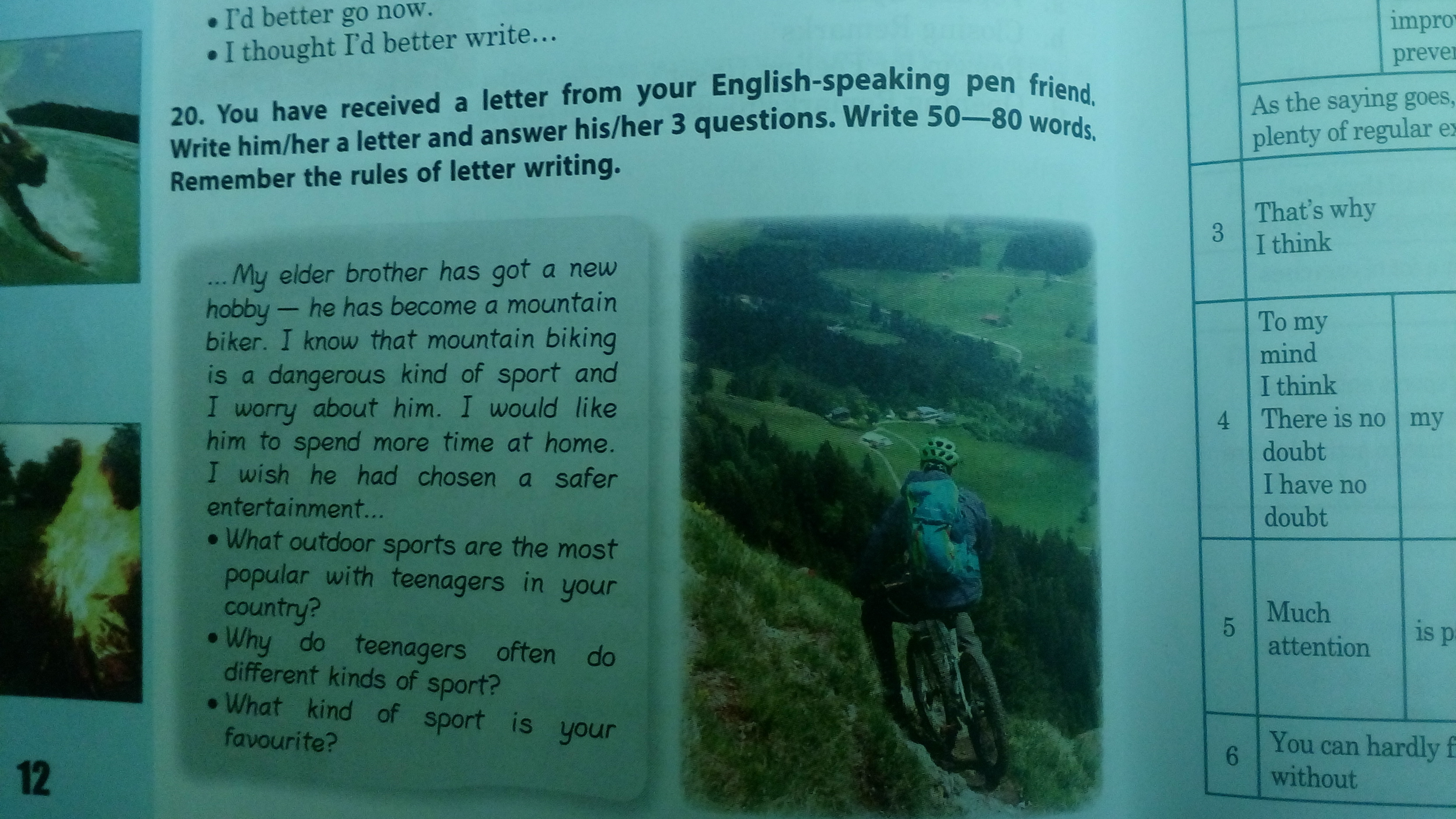 Teenagers often do different kinds of sport because they have much energy and they like to compete.Sport helps us to be fit and builds our charachter,it teaches to win or to lose.