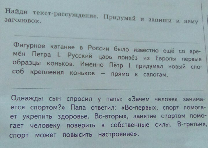 2 текст-рассуждение заголовок можно 'спорт помогает человеку' 'спорт и человек' ну и в том духе