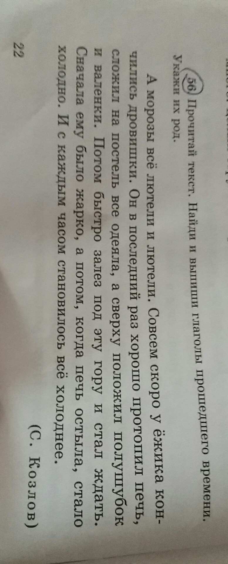 56. Ппочитай текст. Найди и выпиши глаголы прошедшого времини. Укажи их род