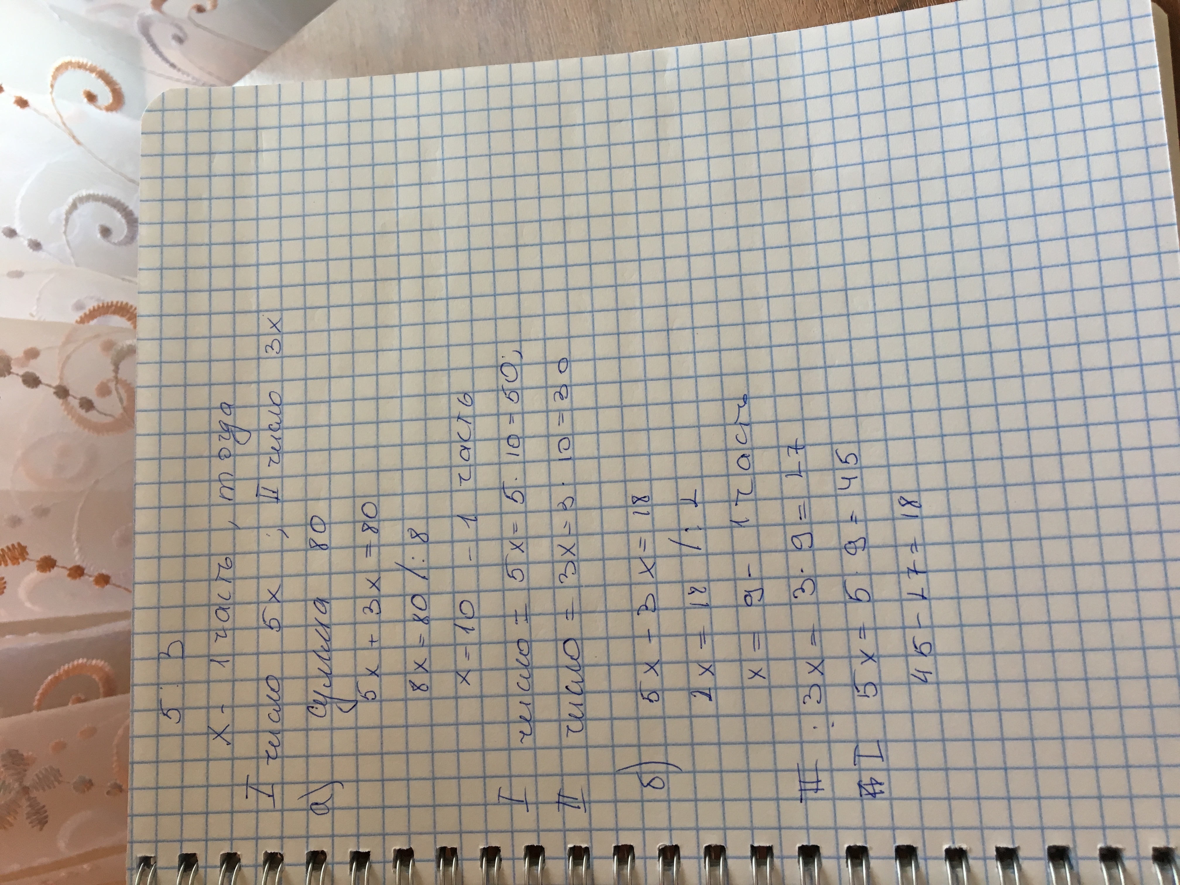 Два числа находятся в отношении 5 к 3. Найдите оба числа если известно, что а) сумма этих чисел равна 80 б) разность этих чисел равна 18.