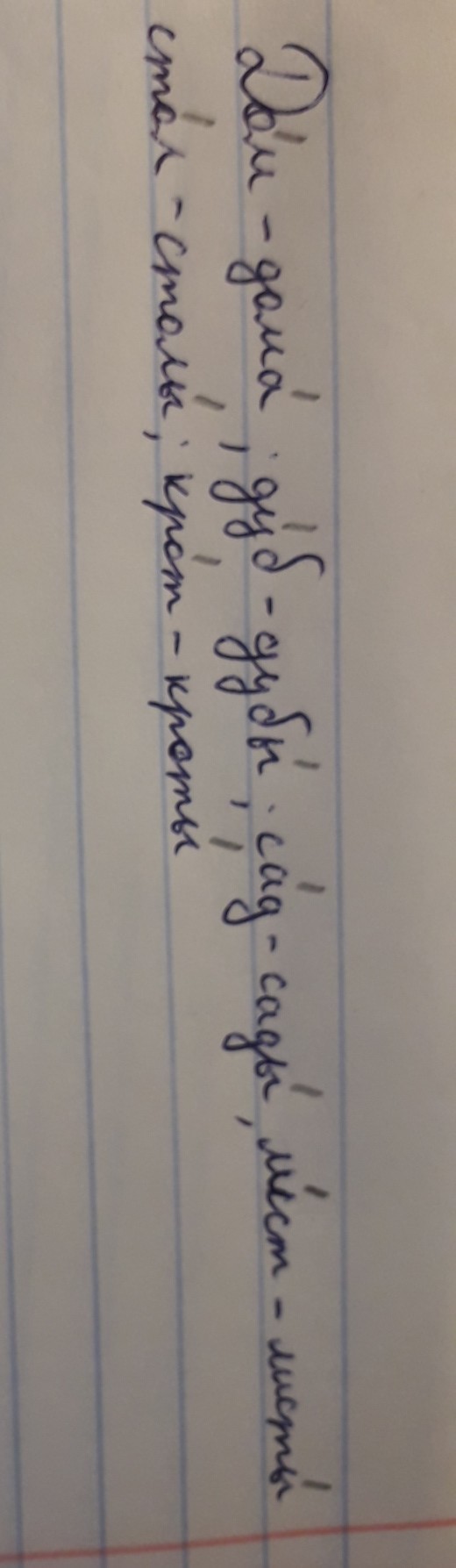 ,дОм- домА .дУб -дубЫ.сАд-садЫ,лИст -листЫ,стОл-столЫ,крОт-кротЫ