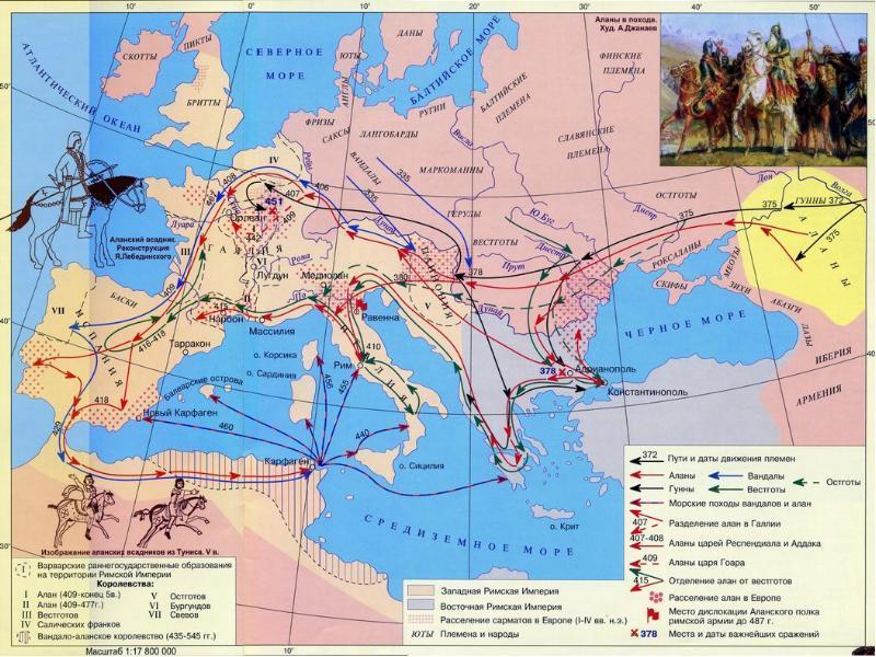 Какие племена вторглись на территорию Европы в 4 веке и обозначает на карте места временных оседний варварских племён
