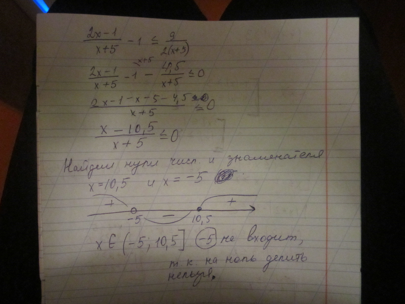 (2x−1):(x+5)−1 ≤9:2(x+5)