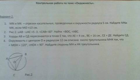 1)MN=NK=√(169-25)=12 (см) - по теореме Пифагора (треугольник ОМК - прямоугольный) и отрезки касательных, проведённых из одной точки, равны