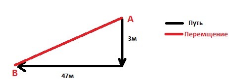 Перемещение - это вектор соединяющий начальное и конечное положение. (от точки A до точки B)
