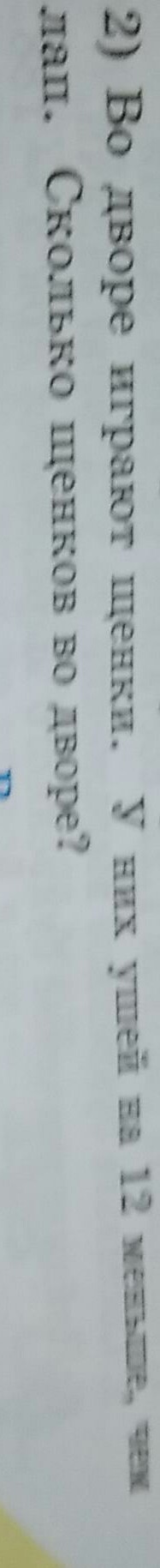 Во дворе играют щенки. Количество их ушей на 12 меньше чем лап. сколько щенков во дворе