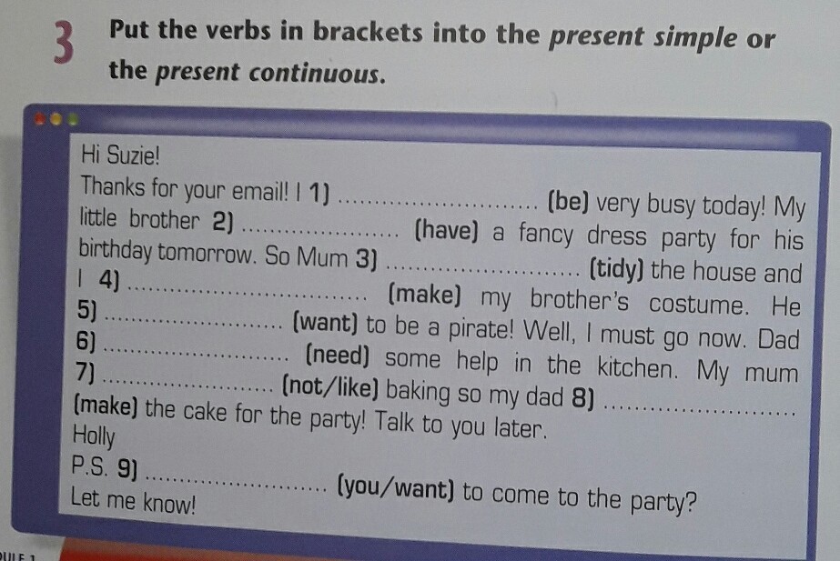 6. needs ( need не используется в настоящем времени ).