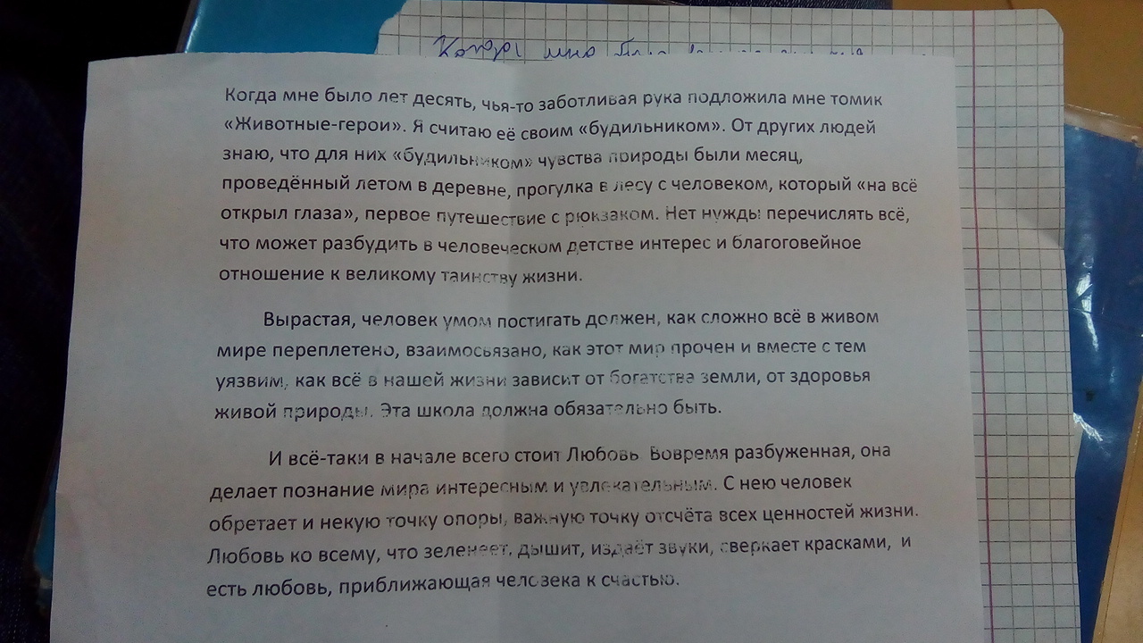 Нет нужды перечислять всё, что может разбудить в детстве интерес и особое отношение к великому таинству жизни. Вырастая, человек умом постигает, как всё в живом мире взаимосвязано, как он прочен и вместе с тем уязвим, как всё зависит от богатства земли, от здоровья живой природы. Эта школа должна обязательно быть.