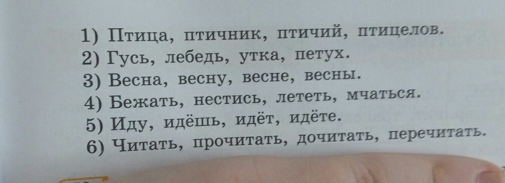 Вопрос: Перепешите, определяя, в каком ряду записаны родственные слова, в каком-формы одного и того же слова, а в каком- слова, сходные по значению, но не родственные. Обозначьте корень во всех словах. Поможете?