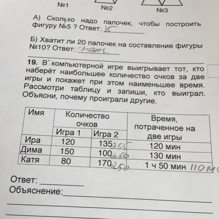 Обьяснение :(Сначала мы складываем общую сумму за 2 игры у каждого.)