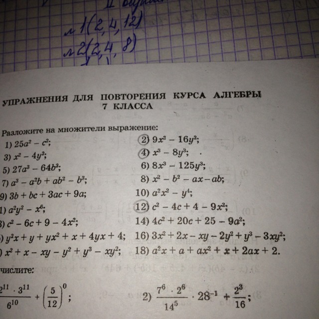 Пожалуйста помогите!нужно разложить на множители выражения.примеры номер 2,4,12