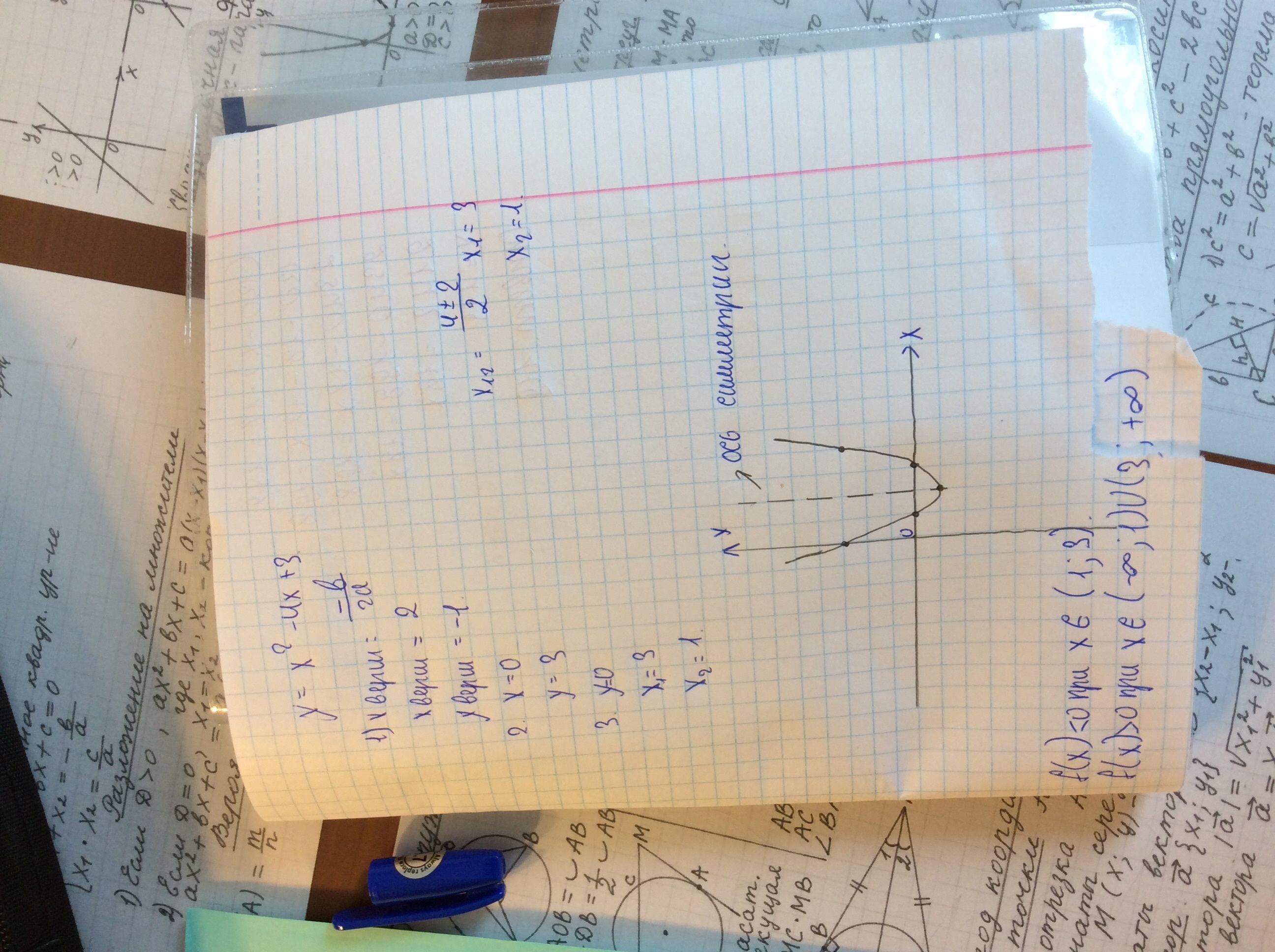 Постройте график функции y=x2-4x+3, укажите значения x, при которых данная функция принимает отрицательные значения. Пожалуйста более понятней