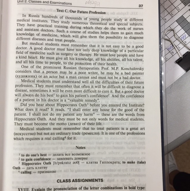 XVII. Прочтите текст. С: а) найдите и перепилите предложения с модальными глаголами; б) выпишите из текста слова одного корня с possible, difficult, to protect, to know и перепилите их; в) найдите высказывание профессора Кончаловского о враче; г) выучите наизусть слова из клятвы Гиппократа.
