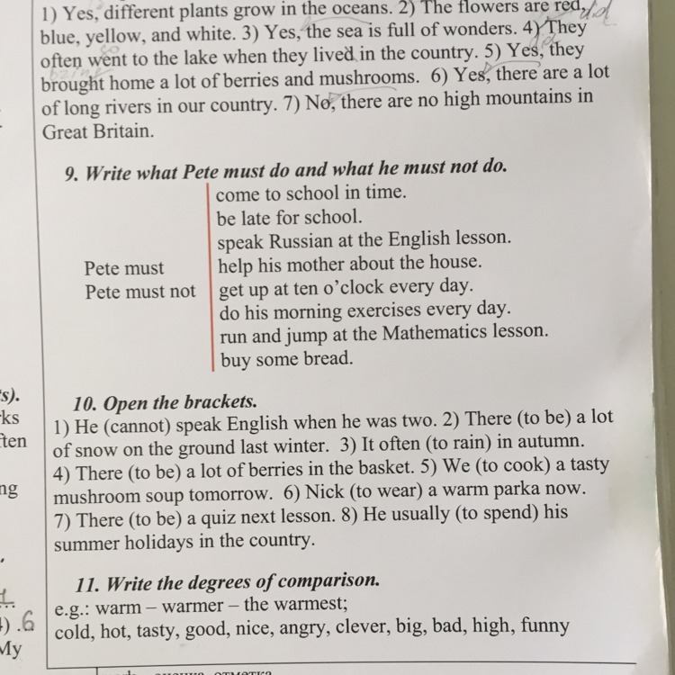 Cold-colder-the coldest;hot-hotter-the hottest;tasty-tastier-the tastiest;good-better-the best;nice-nicer-the nicest;angry-angrier-the angriest;clever-cleverer-the cleverest;big-bigger-the biggest;high-higher-the highest;funny-funnier-the funniest.