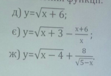 д) D(y)= x принадлежит [-6;+ бесконечность), так как под корнем не может быть отриц числа