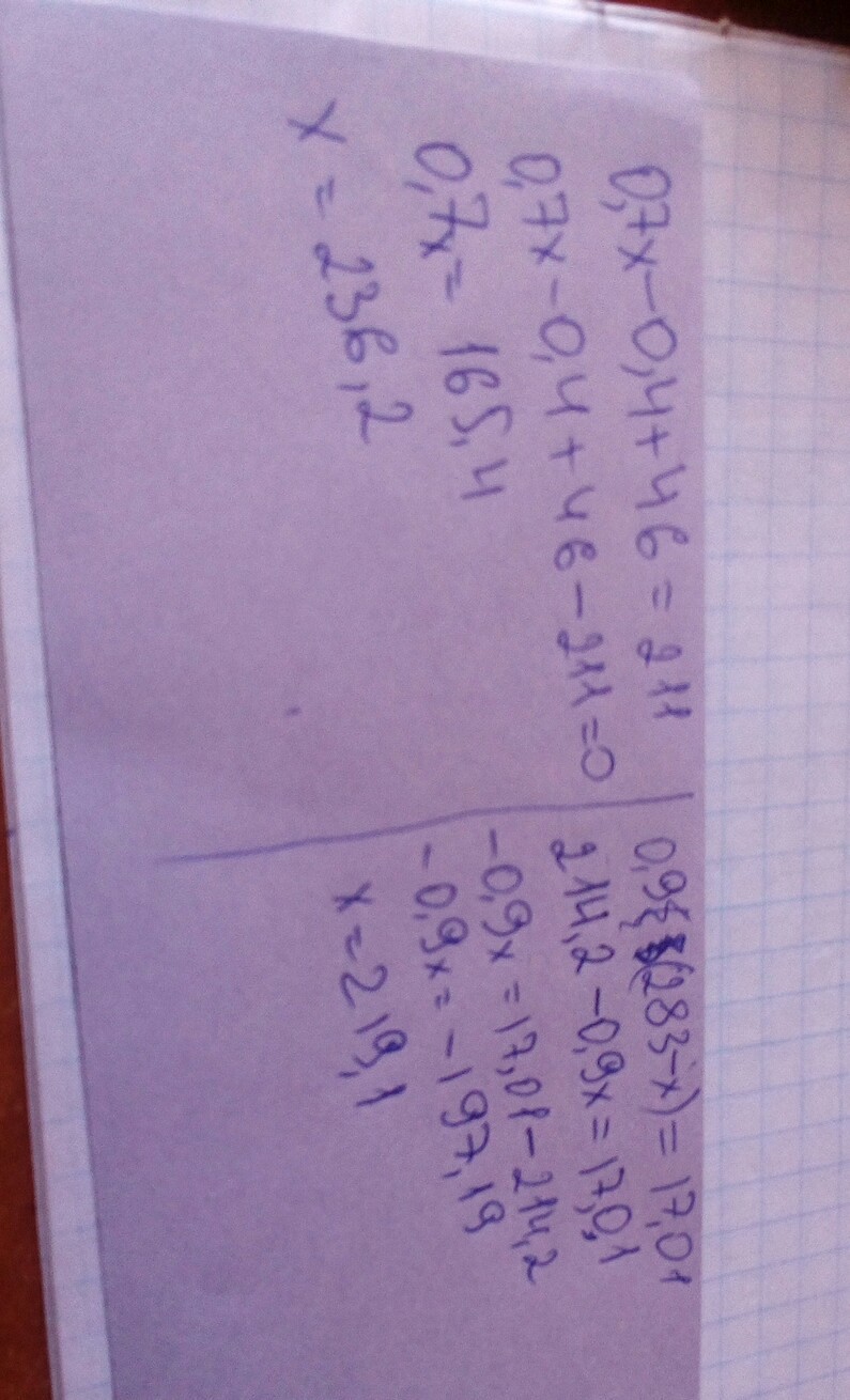 254,7-0,9x=17,01 -0,9х=17,01-254,7 -0,9х=237,69 х=237,69/(-0,9) х=264,1-это на второй