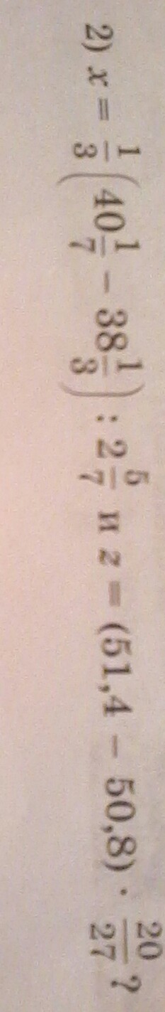 какую часть от числа z составляет число х если: х= 1/3 (40 1/7 - 38 1/3)÷2 5/7 и z= (51,4-50,8)×20/27