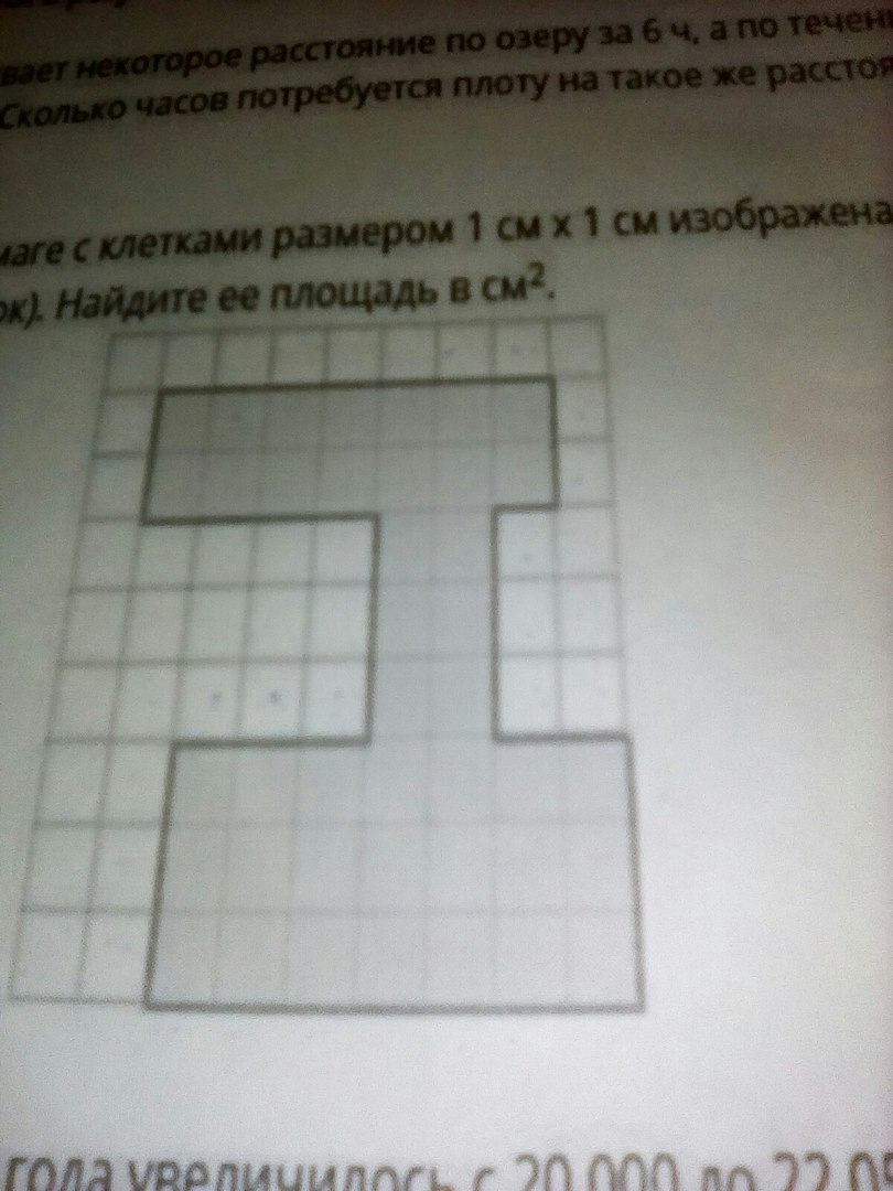 На клетчатой бумаге с клетками размером 1 см x 1 см изображена плоская фигура (см. рисунок). Найдите её площадь в квадратных сантиметрах.