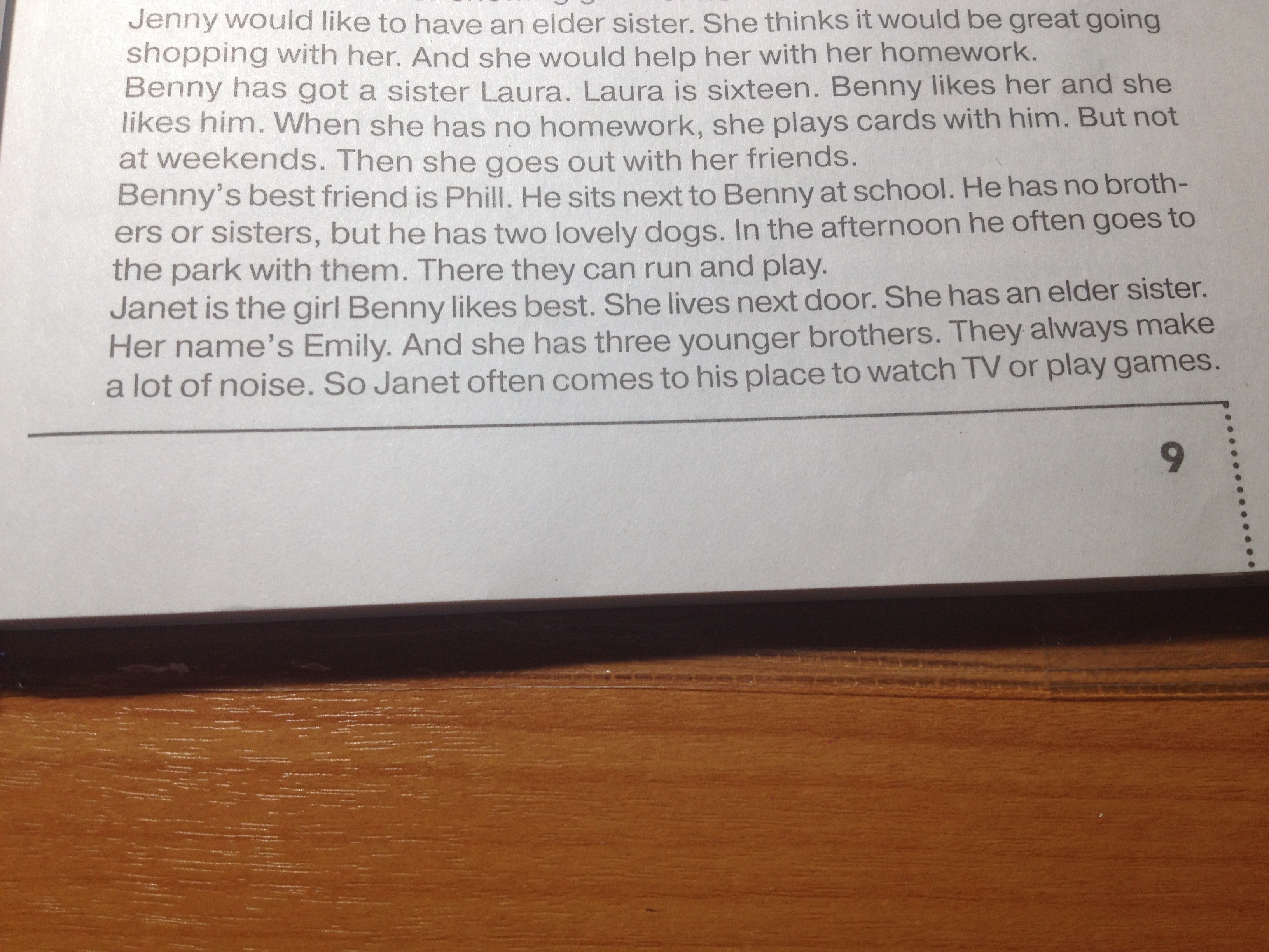 Дженни хотела бы иметь старшую сестру. Она думает будет здорово ходить с ней по магазинам. И она будет помогать ей с домашним заданием.