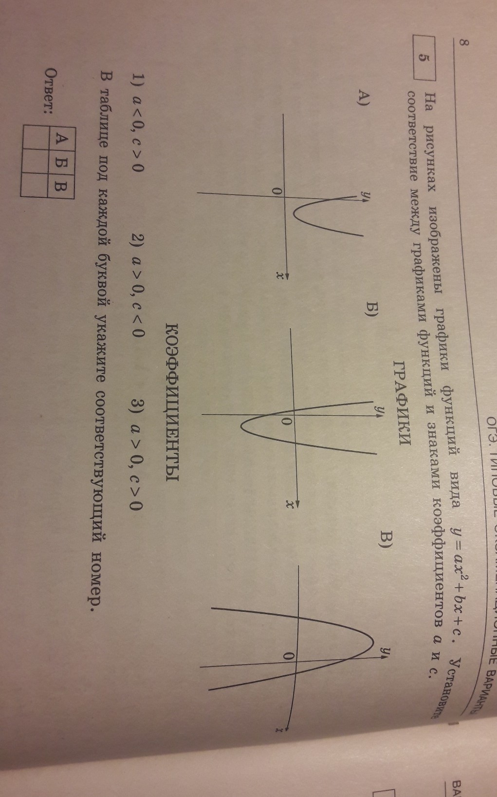 Коэффициент а это направление ветвей параболы, т.е. если а>0, то вверх, если a<0, то вниз. Коэфф. с это расположение самой нижней или самой высокой точки параболы относительно оси х. с>0, то выше оси, с<0, то ниже оси.