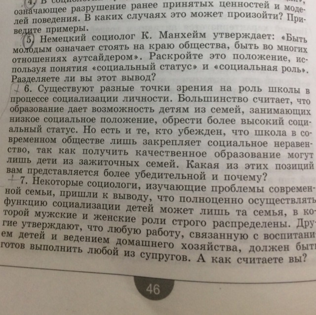 Мне более убидительной кажется позиция большинства, потому что в университетах есть бюджетные места, что-бы на них поступить нужны знания(они оцениваются на ОГЕ и ЕГЕ в баллах), и высокие баллы позволяют поступить на бюджет(за обучение платит государство) Вопрос 7 Я считаю что ведение хозяйсва и образованием детей может заниматься любой из супругов, потому что дети одинаково принадлежат обоим супругам, а значит и воспитанием они должны заниматься вместе, так же как и ведением хощяйства.