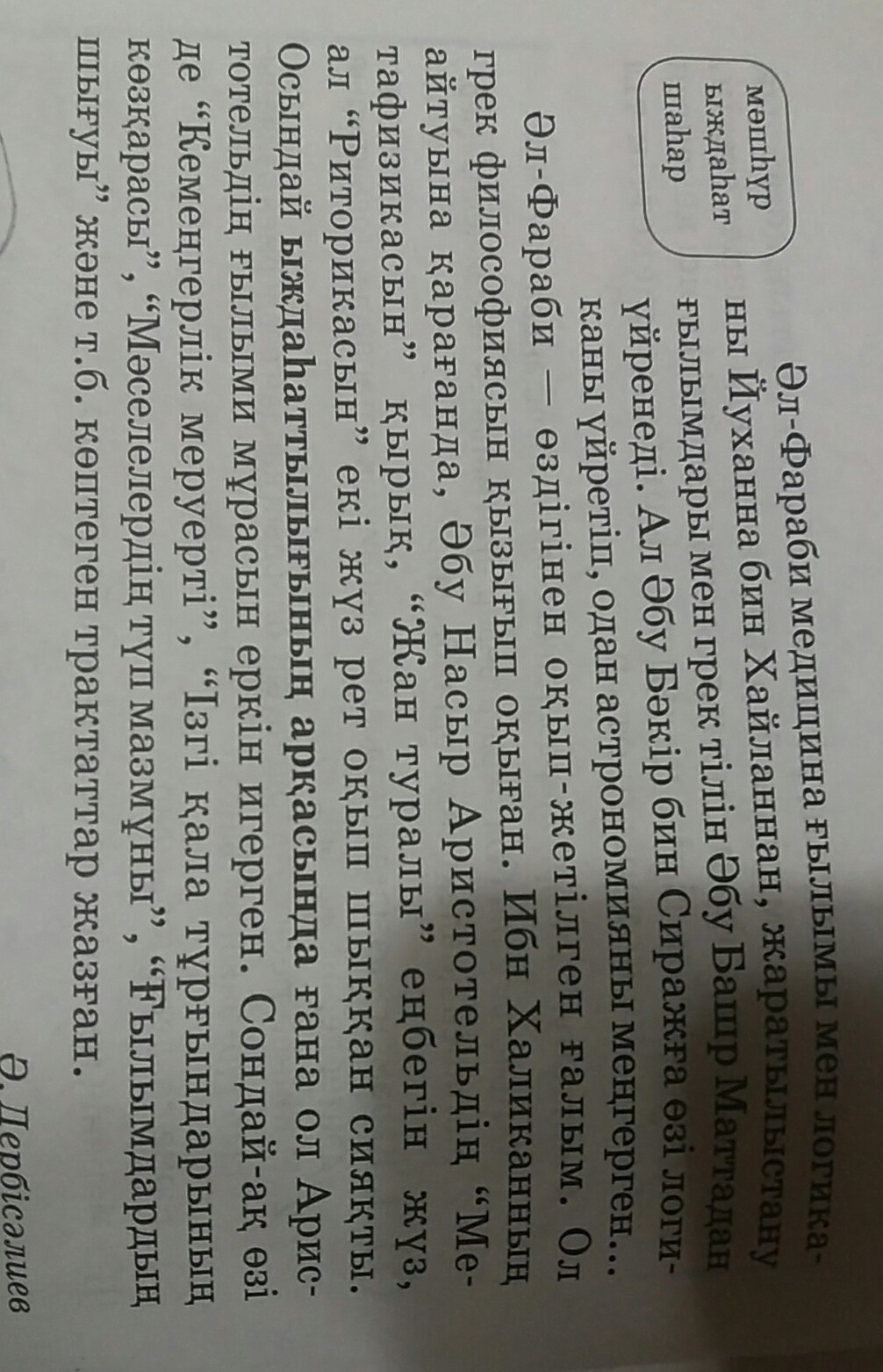 кірме сөздер ұстаз, ғұлама, ныспысы, әт-түрки, медресе, медицина, логика, ғылым, астраномия, философия, метафизика, трактаттар, мәшһүр, шаһарлар, ыддаһат