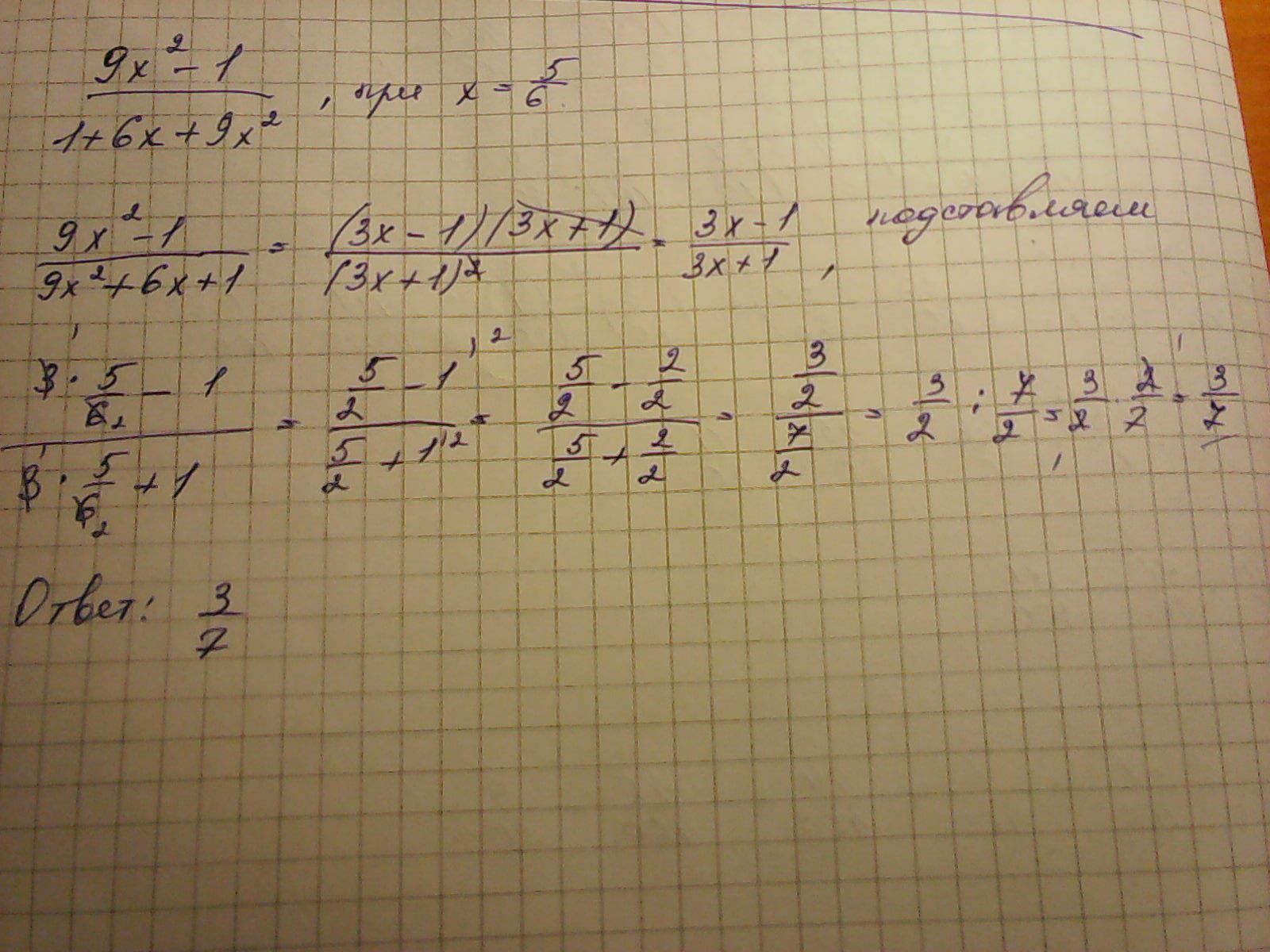 Упрощаем выражение. 9х в квадрате -1 раскладывается по формуле разности квадратов. А знаменатель сворачивается по формуле квадрат суммы.