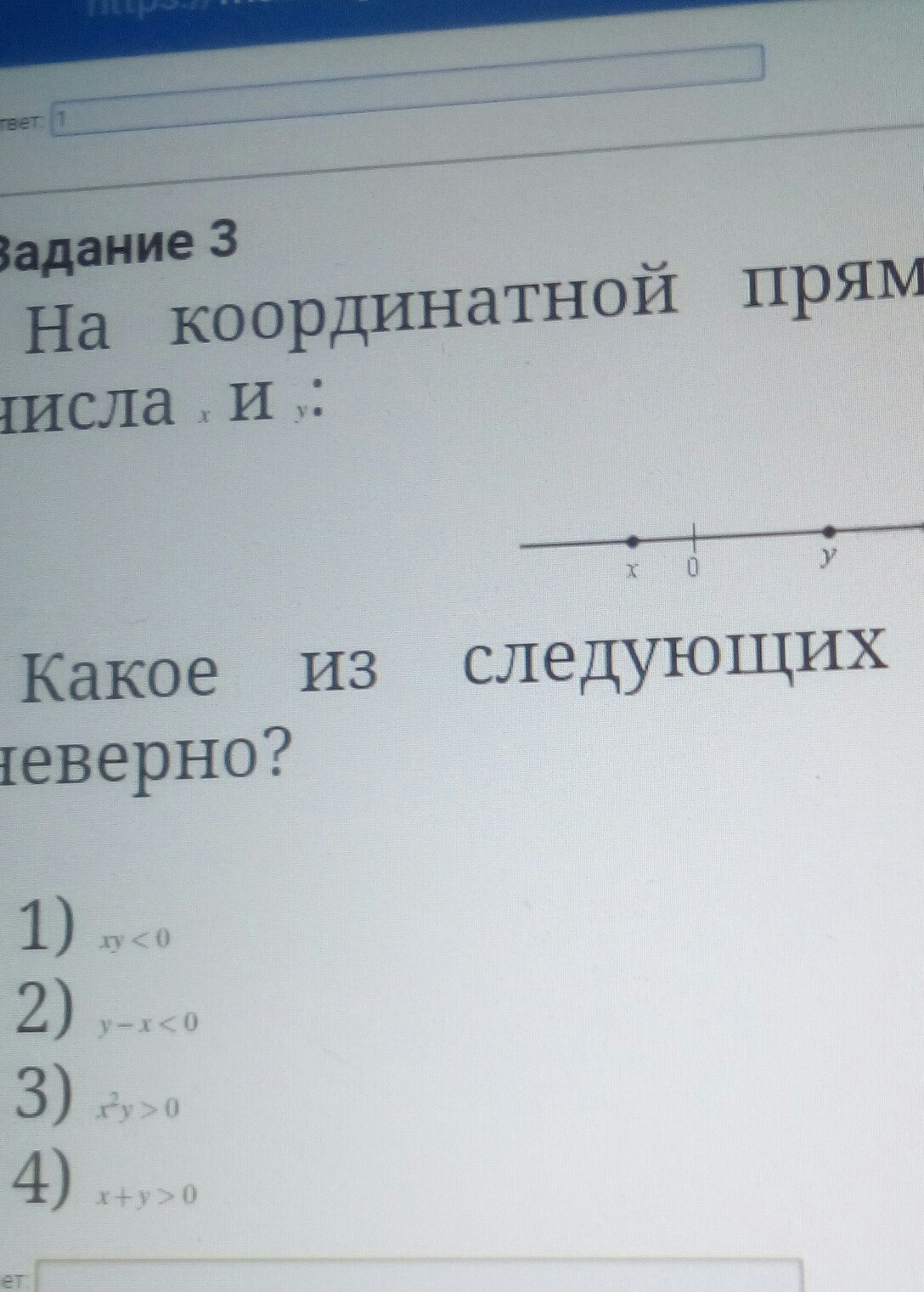 Я думаю что 2), так как х - отрицательный, а у = положительный. А отрицательный х - положительный у = число большее у, то есть оно больше 0
